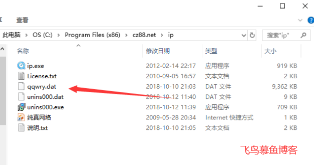 软件安装完成后,进入你的安装目录,拷贝出文件 "qqwry.dat",如下图所示